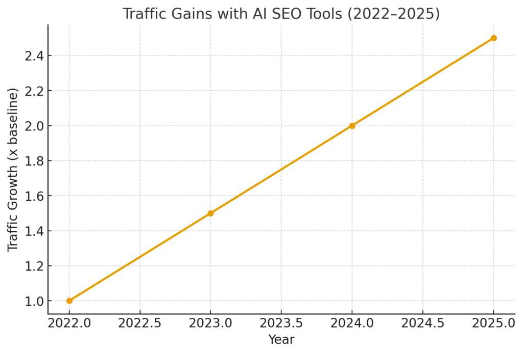 📈 Chart: Traffic Gains with AI SEO Tools (2022–2025)