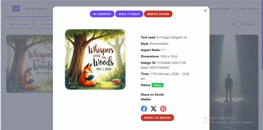 Within seconds, Artistly produces multiple professionally styled book covers. These aren’t just random images. They come with: