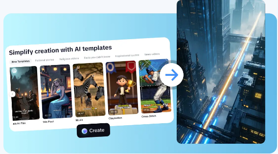 - Ready-made AI templates tailored for TikTok and YouTube