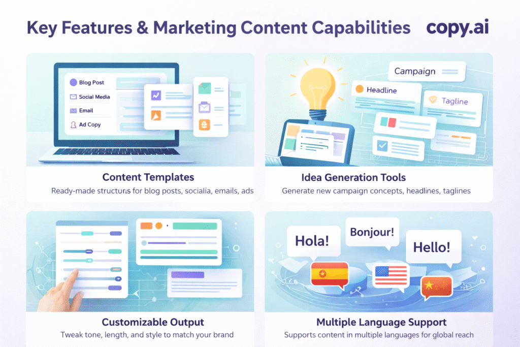 Copy.ai for business marketing is a powerful tool that enhances productivity, speeds up content creation, and ensures consistent messaging across multiple channels. It is particularly effective for short-form content like ads, social media posts, and product descriptions. For small businesses, freelancers, and marketing teams, it can reduce costs and free up time for higher-level strategy work.
