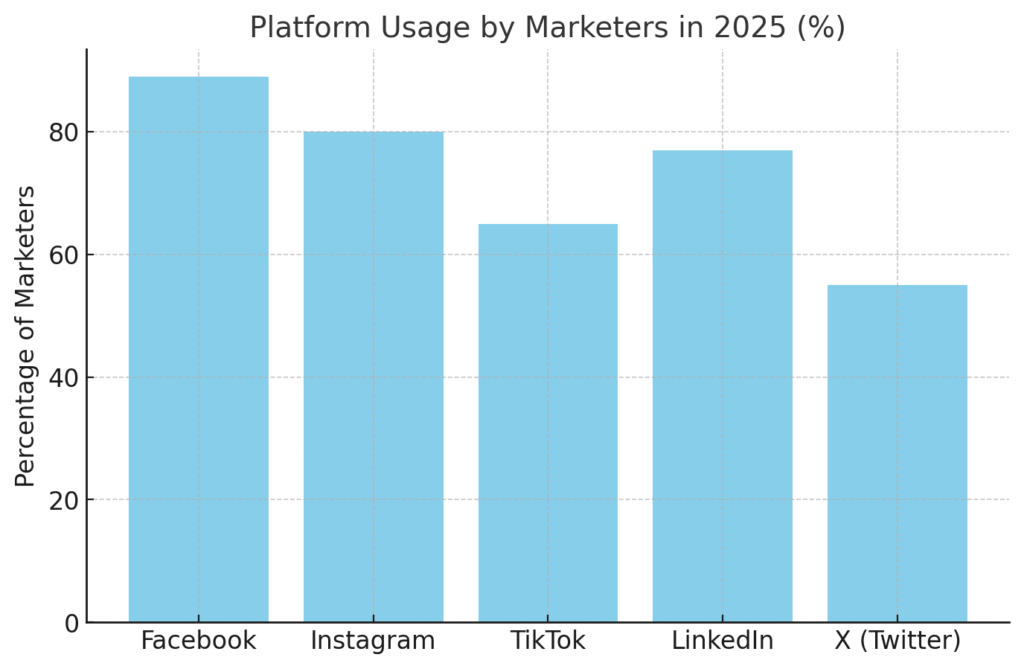 Not all social platforms are equal when it comes to marketing. A 2025 survey revealed that while Facebook and Instagram remain dominant, TikTok has surged as a preferred platform for video-first campaigns. LinkedIn holds strong in B2B spaces, while X (formerly Twitter) continues to appeal to real-time conversation marketers.
